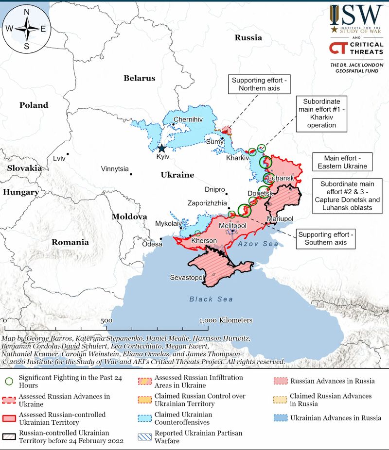 Cum arată harta războiului la data de 22 ianuarie 2026 (potrivit Institutului pentru Studiul Războiului):