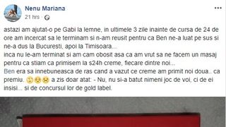 Scandalul legat de cursa s24h desfasurata la Timisoara si la care Mariana Nenu, fosta concurenta in echipa Razboinicilor in sezonul 1 al Exatlon Romania, a reusit sa obtina medalie de aur, continua.