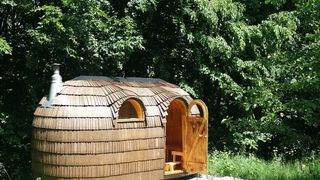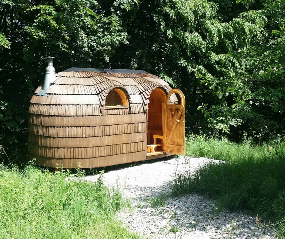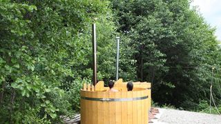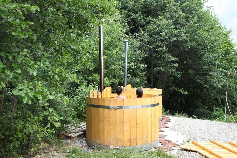Vizitatorii pot face baie si in ciubere de lemn, umplute cu apa calda.