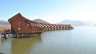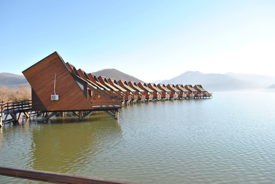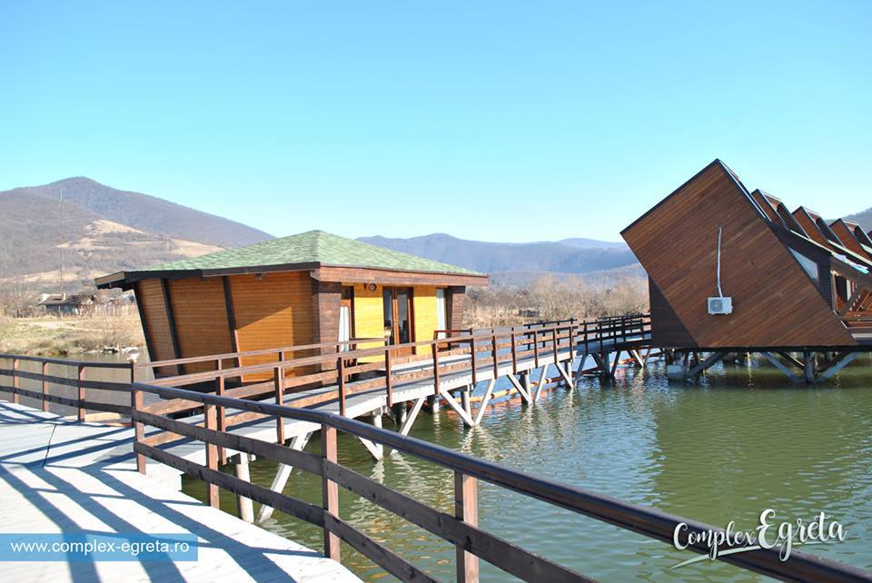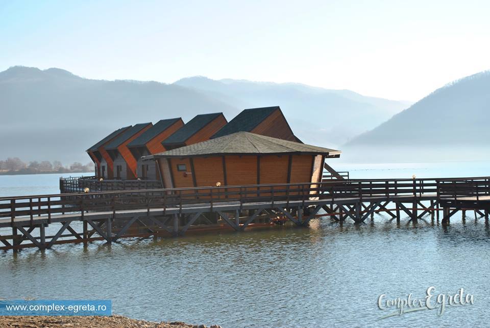 Complexul “Egreta”, satul plutitor din Clisura Dunarii, a fost deschis. Prima statiune lacustra din Europa, realizata cu fonduri europene, isi asteapta oaspetii in 15 casute suspendate legate printr-un lung ponton.