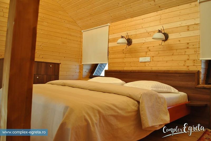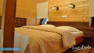 Complexul are 15 bungalouri, fiecare cu baie, minibucatarie si un living cu televizor. Dormitorul este la etaj.