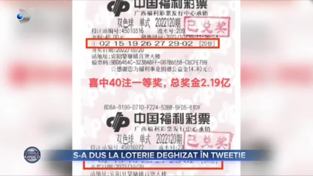 Stirea "S-a dus la loterie deghizat în Tweetie" difuzata in cadrul Stirilor KANAL D din 2 11 2022