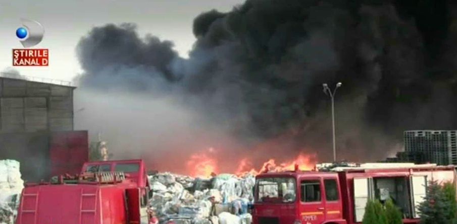 S-a innegrit cerul, aseara, in Prahova. Un depozit de reciclare a luat foc iar flacarile au cuprins o gramada mare de resturi.