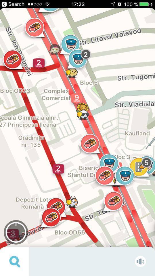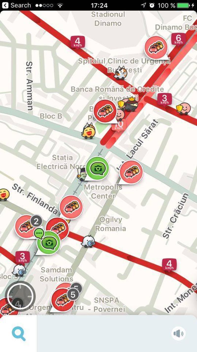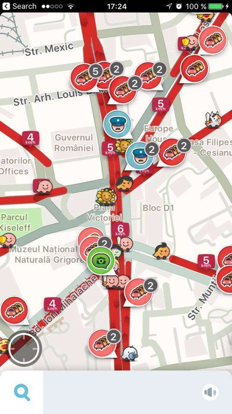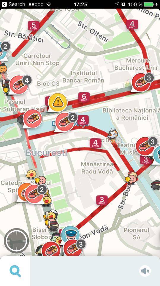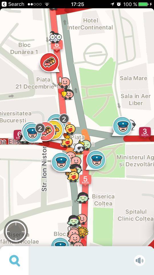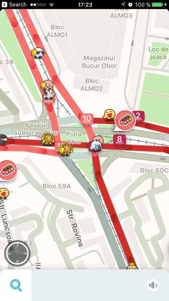 Waze s-a inrosit! Soferii au semnalat pe aplicatie zeci de ambuteiaje, dupa cum se vede si in imagini.
