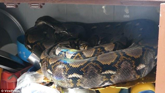 O femeie a avut parte de cea mai urata experienta din viata ei cand a ajuns acasa si a descoperit un piton imens, lung de peste 5 metri in bucatarie.