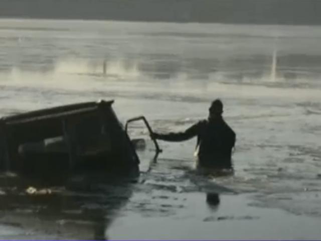 Stratul de gheata a cedat, iar masina in care se aflau cei doi barbati si sase caini s-a scufundat. Cei doi oameni si cateii lor au fost salvati de pompieri, iar masina a fost recuperata ulterior din Dunare de echipele speciale de interventie.