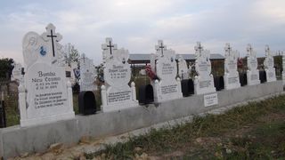 1 din 6 | S-au implinit trei ani de la tragedia de la Rovinari, cand un barbat si cei sase copii ai lui au murit intoxicati cu gaze! Inca devastata de pierdere, mama micutilor a facut pomana la cimitir