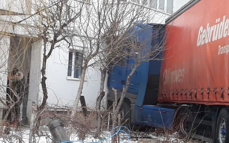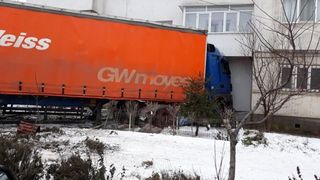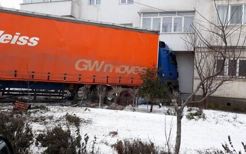 Un sofer a intrat cu tirul intr-un bloc din oras. Nu au fost inregistrate victime. Evenimentul rutier a avut loc pe fondul neatentiei in conducere si a carosabilului acoperit cu zapada.