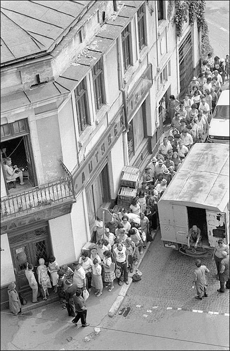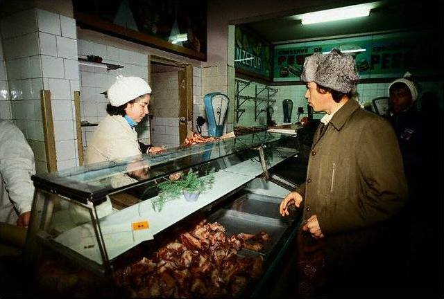 La macelarie situatia era si mai complicata. Cozile se formau de la 3-4 dimineata in speranta ca „se va da ceva”. De multe ori, cantitatea adusa ajungea doar pentru un sfert din cei asezati la coada.