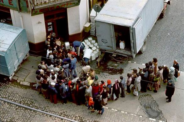 Daca vorbim despre modul de viata al oamenilor, ultimul deceniu al comunismului poate fi caracterizat printr-un singur cuvant: portia. Preturile alimentelor si ale bunurilor de orice fel au crescut, desi lipseau din ce in ce mai mult de pe mesele romanilor. Au fost reintroduse cartelele si au aparut legi potrivit carora era necesar ca resursele pentru aprovizionarea populatiei cu carne, lapte, legume si fructe sa fie repartizate pe judete. ##GALLERY38##