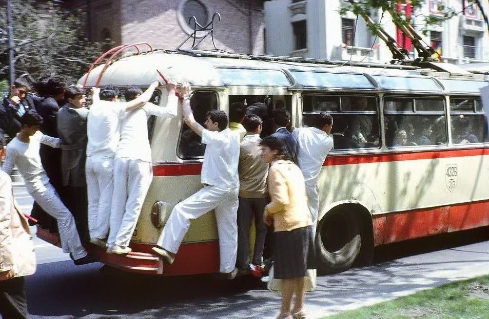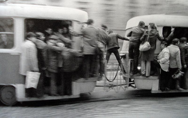 Benzina era si ea rationalizata, iar transportul in comun era supraaglomerat. Oamenii mergeau pe scari si chiar si pe capota autobuzelor.