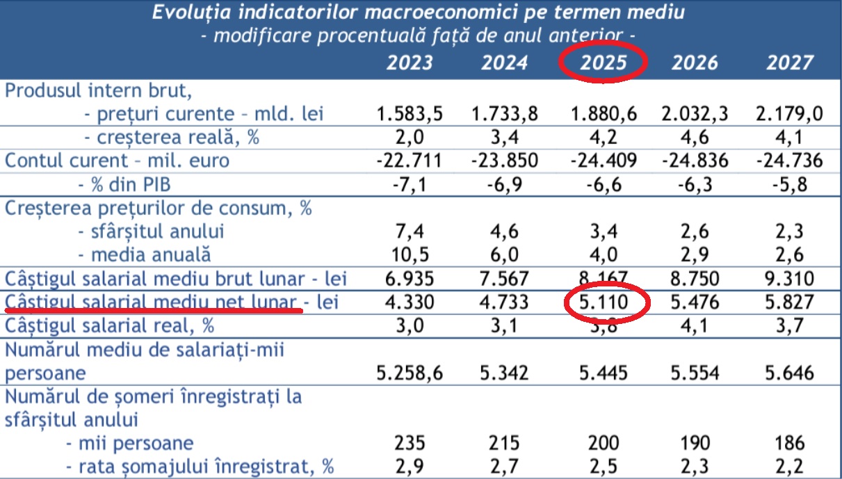 Dacă lucrurile vor decurge conform așteptărilor Guvernului, salariul mediu net va ajunge la 5.110 lei (respectiv 1.030 euro la cursul BNR de acum).
