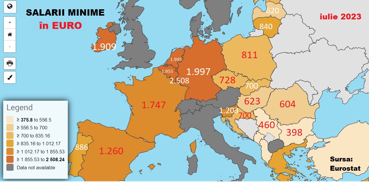 minime din Europa.Cel mai mic salariu minim din UE este în Bulgaria, respectiv 398 euro pe lună.