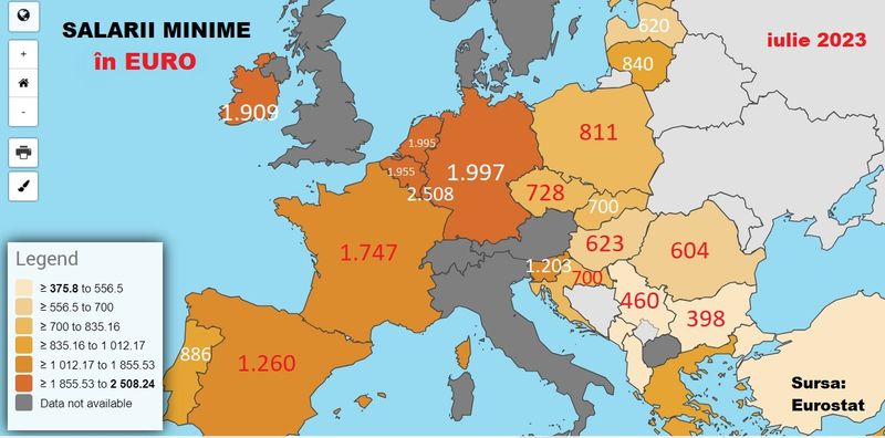 Trebuie precizat că nu toate statele europene au salarii minime, iar unele practică praguri minime sectoriale. Iată HARTA salariilor în iulie 2023: