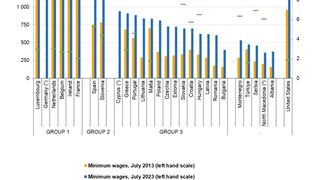 Salariul minim ianuarie 2024. Cu o valoare prognozată de 750 euro în ianuarie 2024, România ar putea depăși 5 țări din UE care se află în momentul de față înaintea noastră în topul salariilor