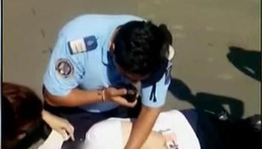 Salvare dramatică în Capitală. Un tânar care se prăbuşise fără cunoştinţă a fost resuscitat, cu mâinile goale, de un jandarm. Vă avertizăm că urmează, imagini cu un puternic impact emoţional. ##VIDEO24210##