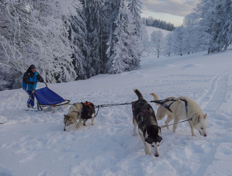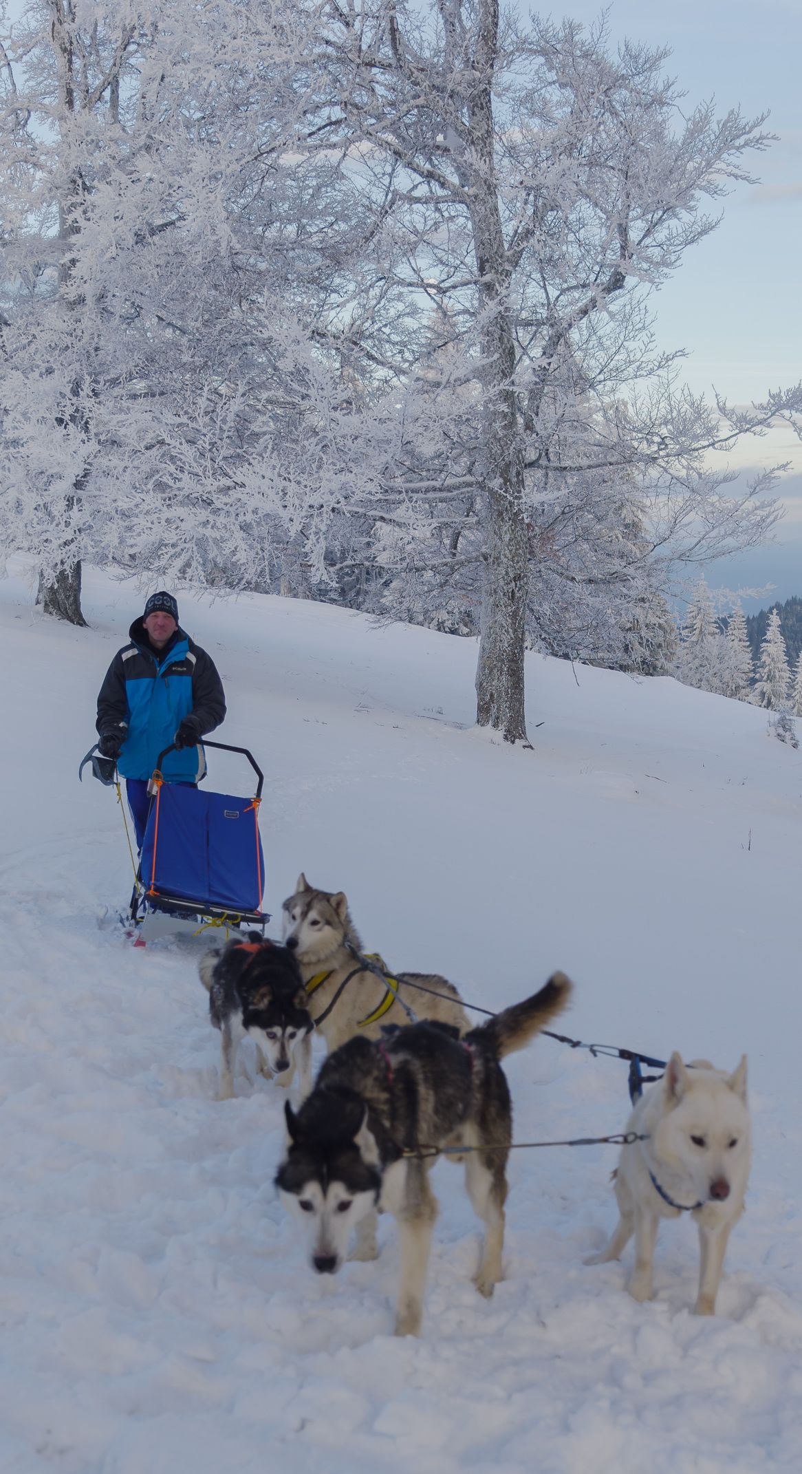 O plimbare cu sania, trasă de faimoșii câini husky, te face să trăiești o experiență fabuloasă.