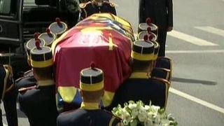 Regina Ana va fi inmormanta astazi. O serie de ceremonii au avut loc sambata dimineata la Palatul Regal din Capitala, dar si in Piata Palatului. Cortegiul funerar si-a inceput apoi drumul spre Curtea de Arges, unde Regina Ana va fi ingropata. 13 august a fost declarata zi de doliu national. ##VIDEO17967##