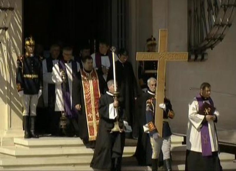 Si aici a avut loc o ceremonie religioasa oficiata de Inalt Preasfintia Sa Arhiepiscopul Ioan Robu, Mitropolit Romano-Catolic de Bucuresti, având alaturi ierarhi si un sobor de preoti catolici si se va incheia la ora 11.20.
