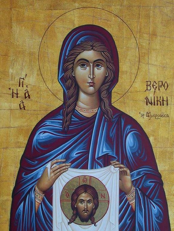 „Iată o femeie cu scurgere de sânge de doisprezece ani, apropiindu-se de El, s-a atins de poala hainei Lui. Căci zicea în gândul ei: Numai să mă ating de haina Lui şi mă voi face sănătoasă; Iar Iisus, întorcându-Se şi văzând-o, i-a zis: Îndrăzneşte, fiică, credinţa ta te-a mântuit. Şi s-a tămăduit femeia din ceasul acela” (Matei 9, 20). De asemenea, se pare că Sfânta Veronica a fost femeia care I-a şters faţa Mântuitorului Iisus Hristos, în timpul patimilor Sale, pe drumul Golgotei. Pe această pânză s-a imprimat chipul Mântuitorului, rămânând cunoscută în istorie ca Sfânta Mahramă – prima icoană a Mântuitorului, una nefăcută de o mână omenească, potrivit doxologia.ro.