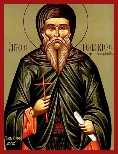Sfantul Isaachie a trait in secolul al IV-lea. Pentru ca imparatul Valens Arianul (364-378) prigonea Ortodoxia, pustnicul Isaachie vine in Constantinopol spre a-i intari pe crestini si a cere imparatului bisericile ortodoxe date arienilor. Este supus la multe chinuri si ii proroceste imparatului moartea pentru ca nu a inapoiat ortodocsilor bisericile luate si date arienilor. Imparatul Valens va muri in lupta cu barbarii.
