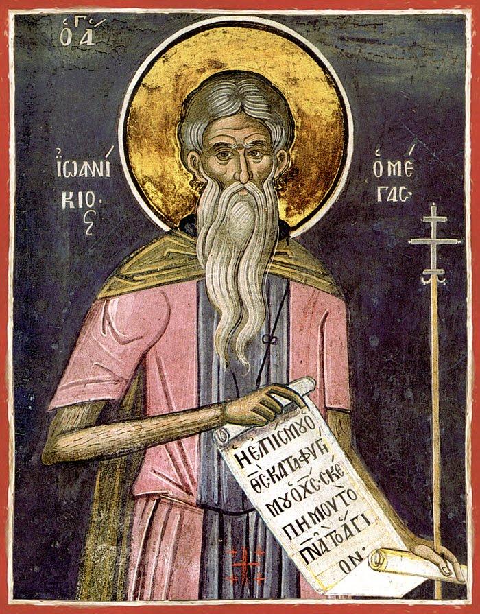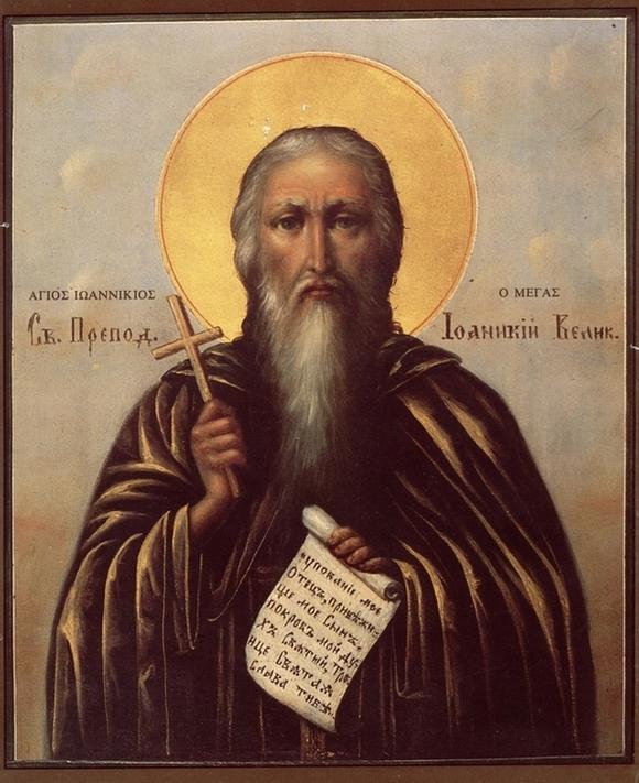 Sfântul Ioanichie cel Mare s-a născut in Bitinia și a trăit în perioada împăratului Leon Isaurul (717-740). În tinerețea sa a luptat pentru distrugerea icoanelor până când un călugăr care apăra cultul icoanelor i-a spus pe nume, deși era pentru prima dată când se vedeau.