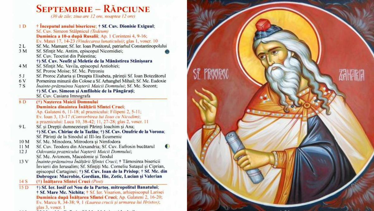 Calendar ortodox 5 septembrie 2024: Cine a fost Sfântul Zaharia?