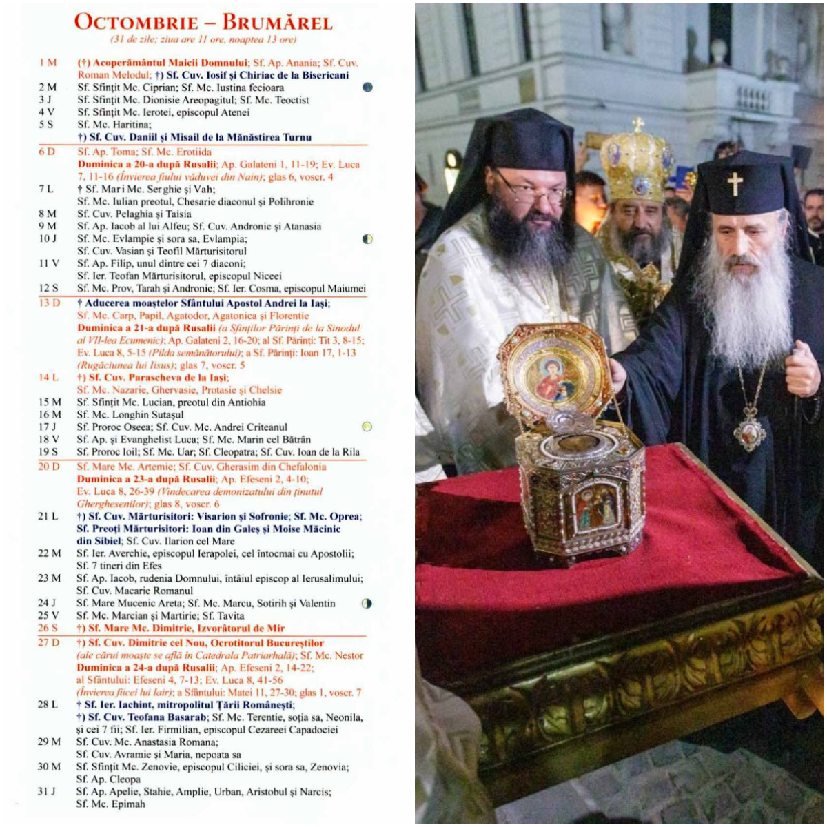 Tot duminică 13 octombrie se face pomenirea: