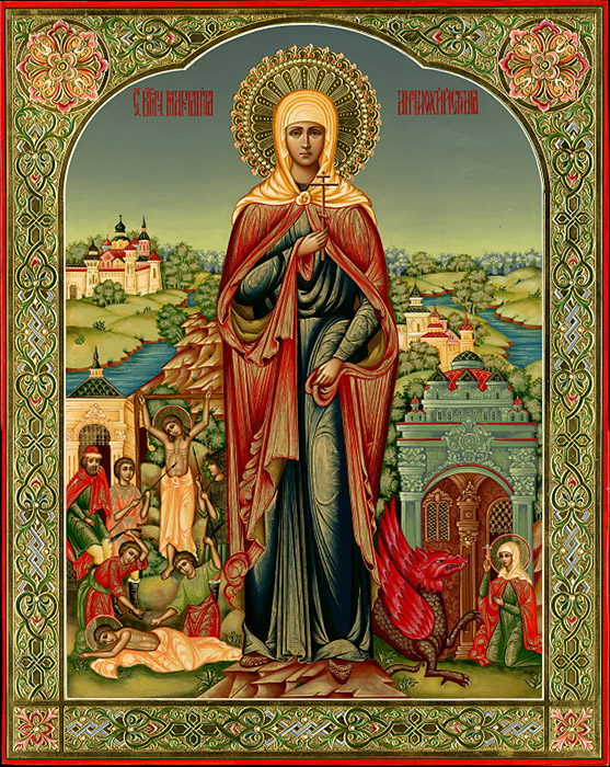 După o vreme, văzând că în continuare se roagă la Cel de Sus, crudul ighemon s-a mâniat și mai tare și după ce a supus-o din nou mai multor chinuri, a decapitat-o.