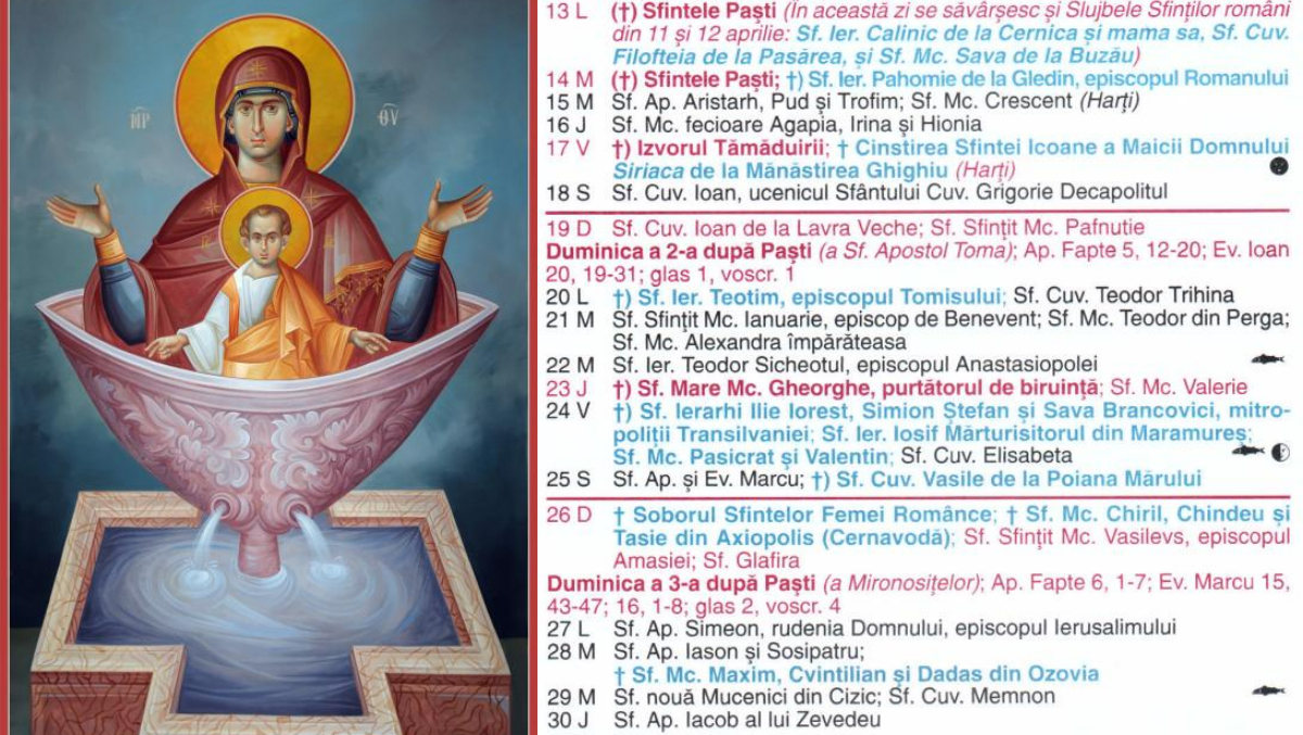 Pe data de 17 aprilie 2026, creștin ortodocșii prăznuiesc Izvorul Tămăduirii, una dintre cele mai importante sărbători dedicate Maicii Domnului din perioada Săptămânii Luminate.