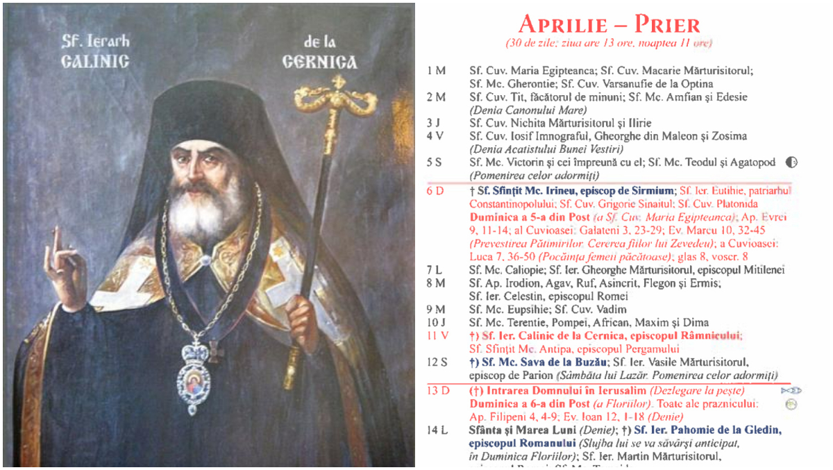 Sărbătoare mare în Calendarul ortodox pe 11 aprilie 2025: Este prăznuit Sfântul Calinic de la Cernica. Este cruce roșie!
