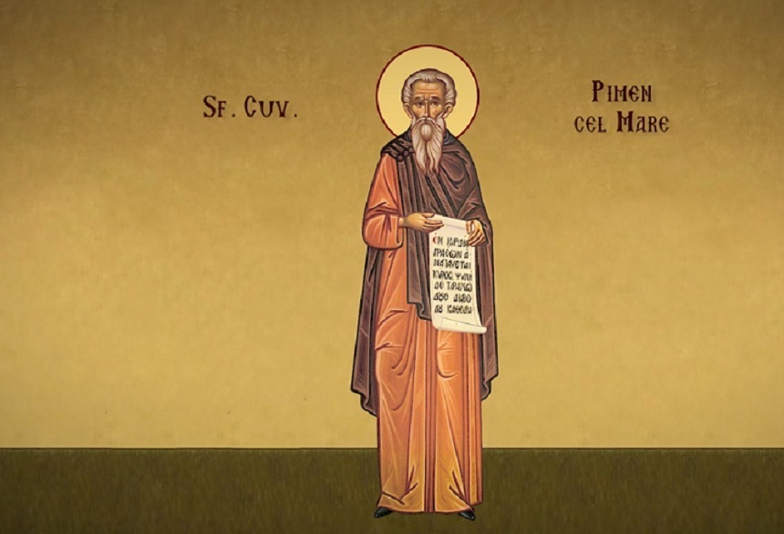 Sfantul Cuvios Pimen cel Mare este pomenit in calendarul crestin ortodox la 27 august. Acesta este unul din marii asceti egipteni, traitor in secolul al V-lea, in timpul imparatului Teodosie II (408-450). A mers in pustiul Egiptului impreuna cu cei sapte frati ai sai, devenind cu totii monahi incercati, scrie crestinortodox.ro.