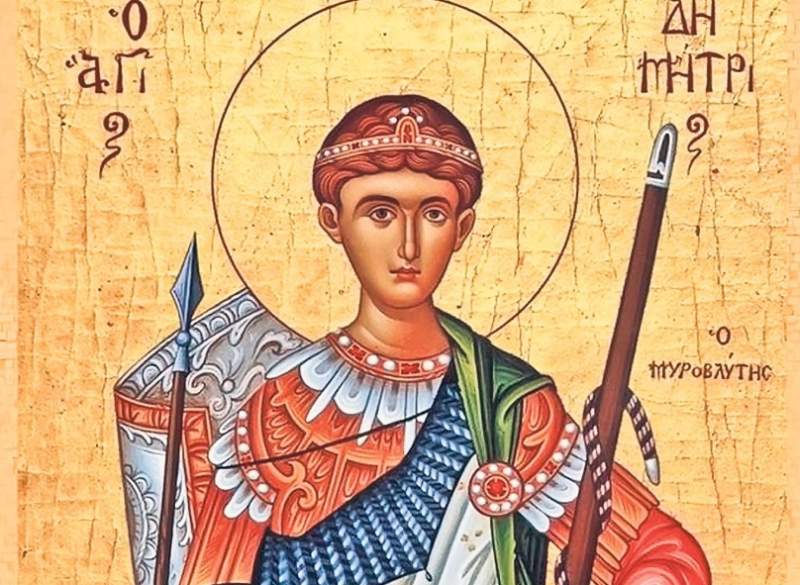 ,,Mare mucenice Dimitrie, Izvorâtorule de Mir, cel care ai ruşinat păgânătatea, plecându-ne genunchii înaintea ta, ne rugăm ţie cu umilinţă: Tu, cel care stai înaintea lui Hristos, vindecă-ne prin rugăciunea ta de patimile sufleteşti şi trupeşti care ne apasă