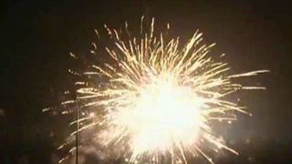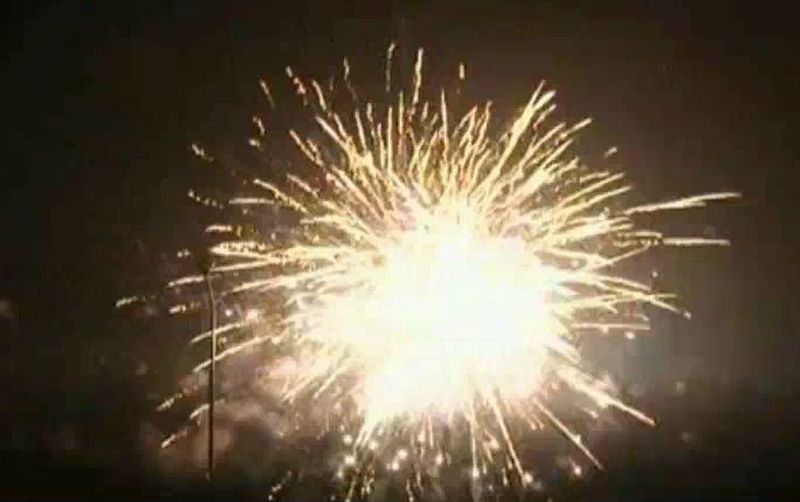 Oamenii se bucura de artificii dupa slujba din biserica.