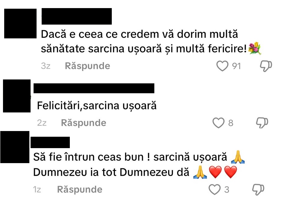 „Să fiți sănătoși și bunul Dumnezeu să vă dea putere să mergeți mai departe!”, „Felicitări și multă sănătate!”, „Dacă e ceea ce credem, vă dorim multă sănătate, sarcină ușoară și multă fericire!”, „Felicitări! Sarcină ușoară!”, „Să fie într-un ceas bun! Sarcină ușoară! Dumnezeu ia, tot Dumnezeu dă!”, au fost doar câteva dintre comentariile primite de artist la clip.”