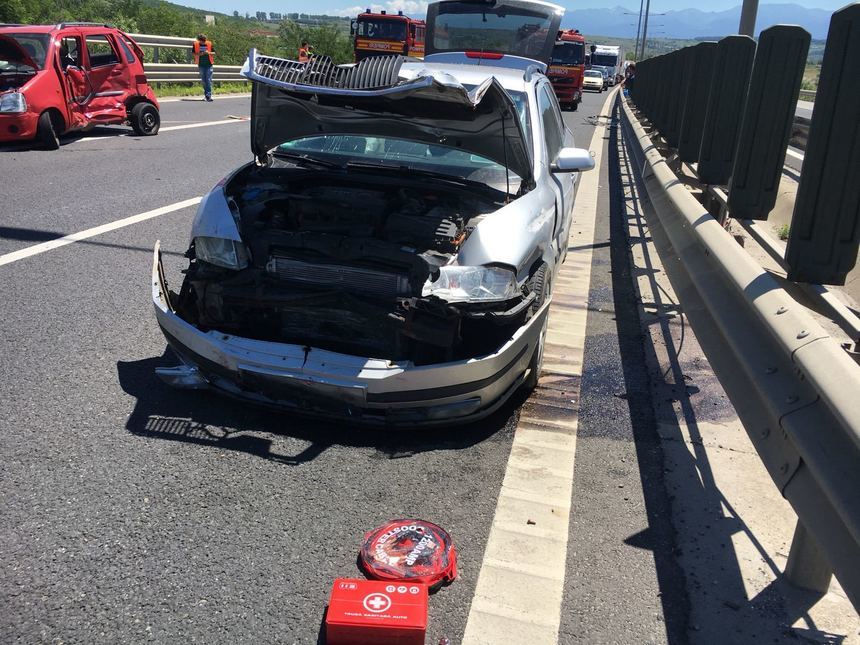 Sase victime in urma unui accident cauzat de o femeie care a intors masina pe autostrada A1 Sibiu - Sebes