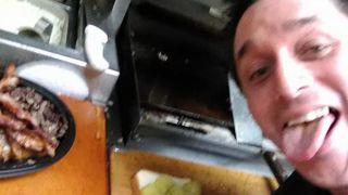 3 din 3 | Satul sa astepte sa fie servit, un client al unui restaurant a sarit tejgheaua bucatariei si si-a facut selfieuri in timp ce-si facea singur mancare. Ce a urmat...
