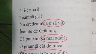 O profesoară nemulţumită de faptul că poezia "Balada unui greier mic", de George Topârceanu, a fost modificată a postat pe pagina unui site de socializare poza cu manualul şi varianta pe care copiii trebuie să o înveţe.