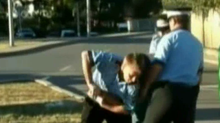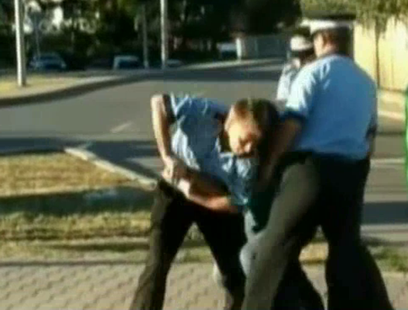 Sunt trei oameni ai legii care incearca din rasputeri sa imobilizeze un conducator auto. A fost vazut in trafic facand manevre care ii pun in pericol pe ceilalti soferi. Ca sa-l calmeze, politistii folosesc inclusiv catusele. Reusesc sa-l potoloeasca pe barbat doar pentru o clipa, timp in care individul cuprins de furie isi aduna fortele pentru o alta rabufnire!