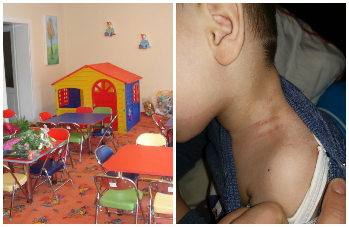 Tatăl copilului povesteşte că atunci când a cerut explicaţii, la grădiniţă, în legătură cu urmele de pe gât, i s-ar fi spus că micuţul s-a lovit pe sub măsuţe.