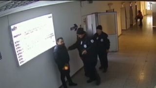 Intregul scandal a fost surprins de camerele de supraveghere din spital. Un tanar recalcitrant incearca sa intre in spital, insa paznicul il opreste. Agresorul il imbranceste pe gardian si incearca sa urce in sectia unde era internata o ruda de-a sa. O perioada, cei doi dispar din raza camerei, ulterior, revine doar paznicul, sangerand.