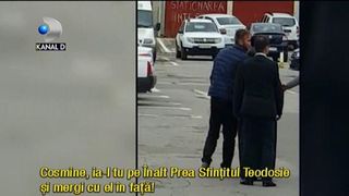 Taina in toate nu se poate! Oricat s-a straduit arhiepiscopul sa scape neobservat, ghinion! Masina aurie, de zeci de mii de euro, cu care a venit prelatul la politie le atrage atentia jurnalistilor! Politistii cauta insa sa-l protejeze si il duc spre usa din dos.