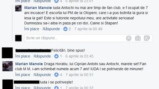 Postarea a starnit imediat reactii din partea celorlalti fani, dar si a fratelui Madalinei, Marian. „Iuda Antochi (Ciprian Antochi, n.r.) nu mai are timp de fan club, e foarte ocupat de 7 ani incoace.