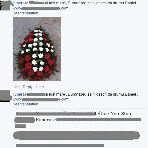 2 din 3 | Scandalos! Ca la noi, la nimeni! In goana dupa publicitate, o firma care face coroane funerare a invadat cu reclame contul de Facebook al regretatului Daniel Prodan!