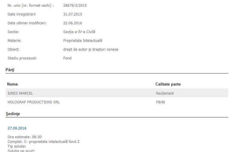 2 din 3 | Scandalul dintre Marcel Iures si Holograf continua! Au fost trei infatisari la Tribunal, toate amanate pana acum! Urmatorul termen e in septembrie