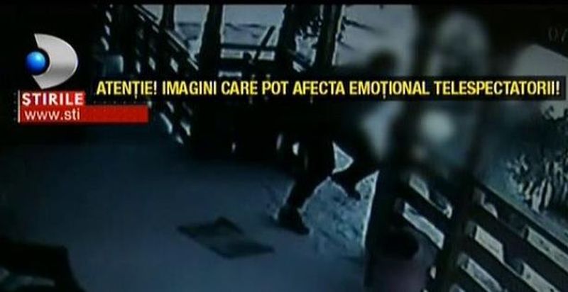 Bataia continua, desi este evident ca victima nu poate sa tina piept furiei celor doi. In scurt timp este pus la pamant, iar agresorii continua sa-l loveasca cu pumnii si picioarele. Practic lovesc ca intr-un sac de box. In cateva secunde, se pravalesc cu totii pe ciment. Femeia incearca din nou sa intervina. Pesemne incearca doar sa-i mai stapaneasca putin pe cei doi agresori, pentru a nu se ajunge la o adevarata tragedie.