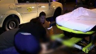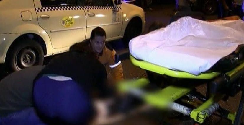 Si femeia care zacea pe asfalt a avut nevoie de ajutor: medicii de pe ambulanta au luat-o pe targa.