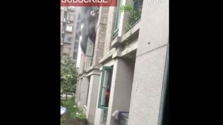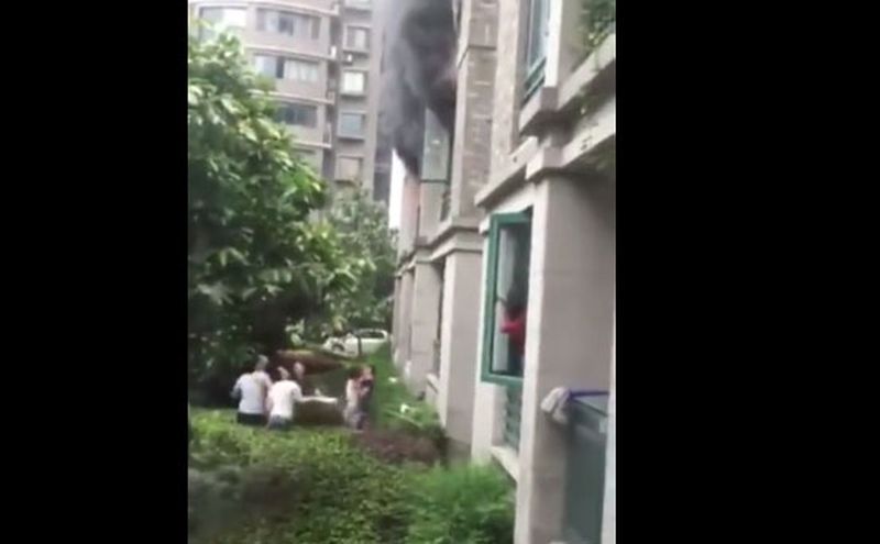 Un barbat din China si-a aruncat fetita de cativa ani pe geam pentru a se salva din incendiul care le cuprinsese apartamentul.