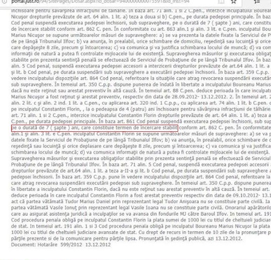 Grav este faptul ca individul care l-a amenintat pe agent a fost condamnat in 2012 la 4 ani de inchisoare cu suspendare pentru talharie calificata. In plus, timp de 7 ani el este in termen de incercare.