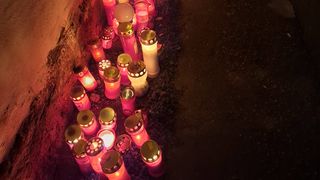 3 din 4 | Scene sfâșietoare la priveghiul lui Ion Drăgan! Zeci de coroane și candele aprinse în curtea casei marelui interpret de muzică populară